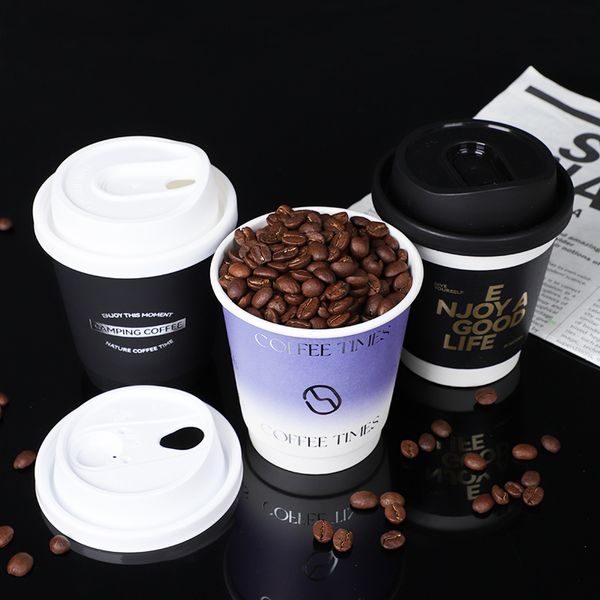 New Arrivals Biodegradable Recyclable Custom Take Away Coffee Cups Stamping Double Wall Coffee Paper Cups With Lids$0.02