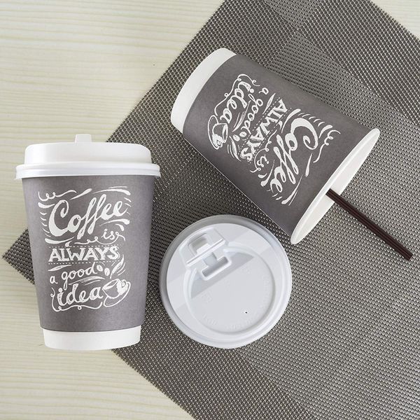 High Quality Custom Logo Printed Disposable Double Wall Paper Cups with Lid and Straw for Hot Coffee at Parties$0.01