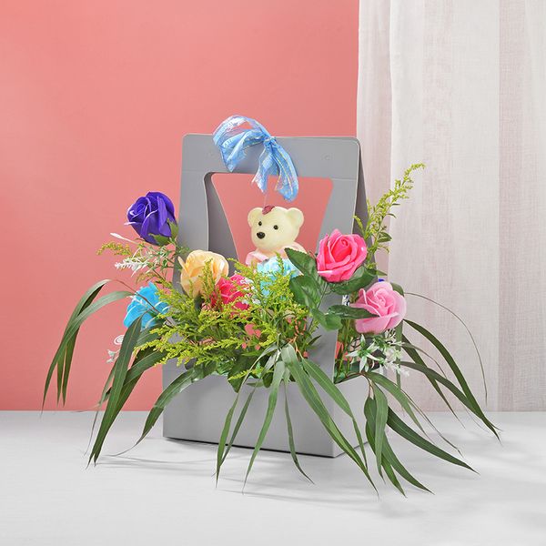 Hot Sales Flower Packaging Bag Florist Handle Flower Basket Gift Carry Art Paper Box Portable Flower Paper Baskets$0.58