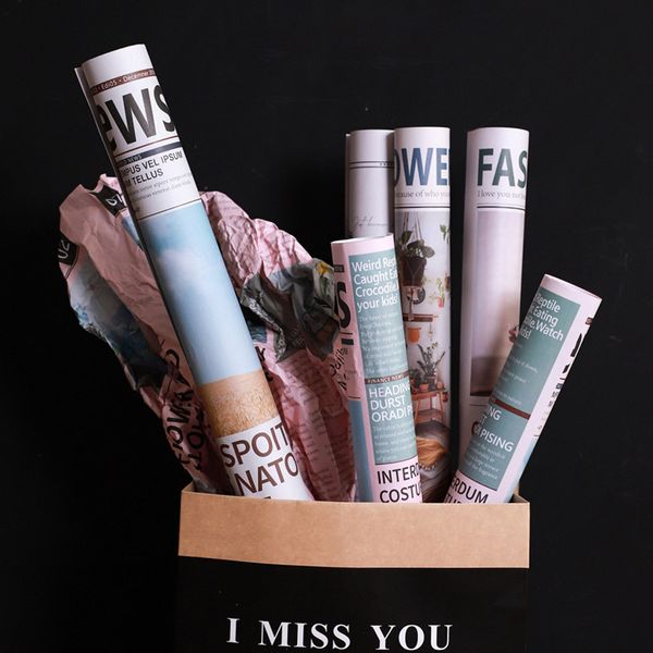 Flower Shop Flower Material Wholesale Gift Flower Wrapping Paper Thickened Kraft Paper Retro Newspaper English Newspaper$1.9