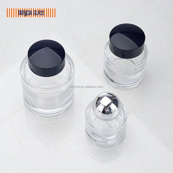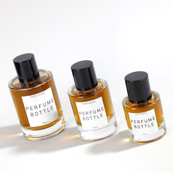 Luxury Heavy Glass Perfume Bottle 50ml Cylinder Parfum Botol 30ml Empty Glass Fragrance Perfume Bottle With Flocking Cap$0.5