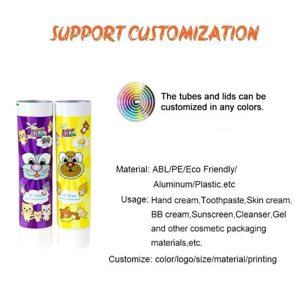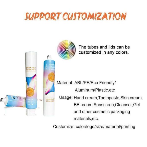 Customizable Color Tube Packaging Cosmetic Tube, 120g 150g PE Round Shape Collapsible Empty Plastic Tube Cosmetic$0.08