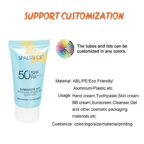 Custom Logo Sealed Arc Shaped Sunscreen Tubes for Travel Size SPF 30-50 With Eco Friendly Plastic Material$0.1