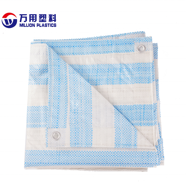 Light Blue White Stripe PE Plastic Tarpaulin Waterproof ForTaiwan Woven Industrial Fabric Stain Resistant Tarpaulin$1.2