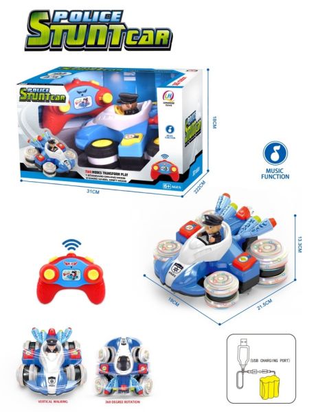 2.4G Cartoon Remote Controll Police Stunt Car for 6 Years Old with Music Battery$7.4