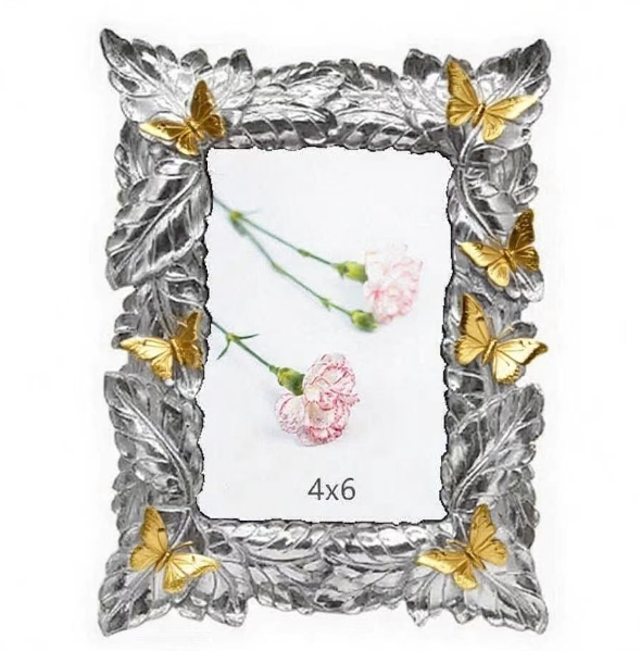 Simple Indoor Outdoor Home Decoration Resin Photo Frame 4*6 Inch Silver Leaf Wall-mounted Resin Photo Frame Front Glass$3.52