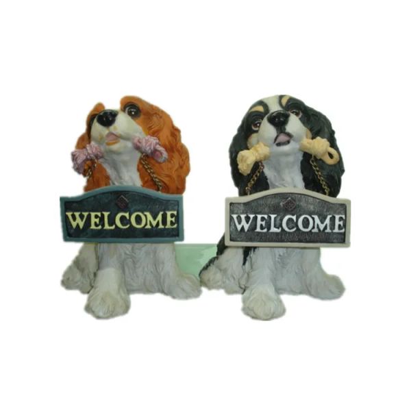 Resin Craft Dog Figurines Welcome Board Ornament Garden Canteen Zoo Gate Decoration Home Accents$6.2