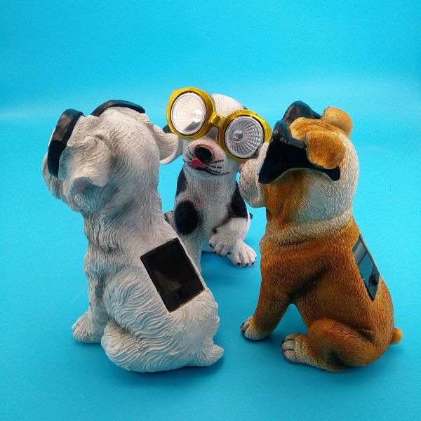 Dog Statue Solar Light Outdoor Yard Art Resin Craft Garden Ornament Cute White Dog Figurine Funny Solar Lamp Home Decor$5.87