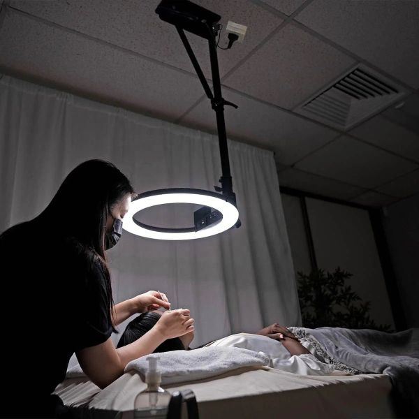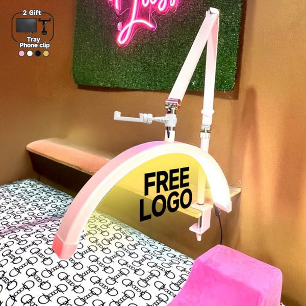 Factory Wholesale Half Moon Nail Lamp LED Lash and Tattoo Light With Phone Holder for Nail Beauty Salon Metal Table Lamp$15