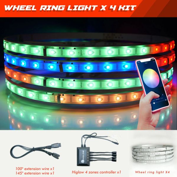 Car LED Lights LED Wheel Ring Lights Smartphone APP Controlled 15inch Wheel Ring Light Kit Boat Ambient Lighting LED Rock Light Kit$101