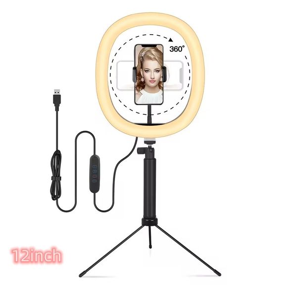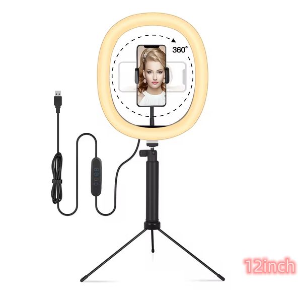 12in Diameter Photographic Ringlight Tiktok Living Video Fill Light Makeup 12 in Led Selfie Ring Light with Desktop Tripod Stand$2.99