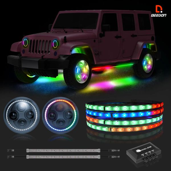 APP Controlled Music Sync Color Chasing Wheel Ring Light & LED Headlight Kit$188.4