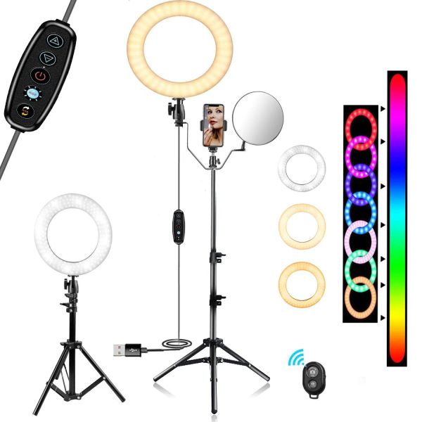 10" Selfie Ring Light, RGB Dimmable LED Ring Light with Tripod Stand for Youtube Video/Live Steaming, with Cell Phone Holder and Bluetooth$20.8