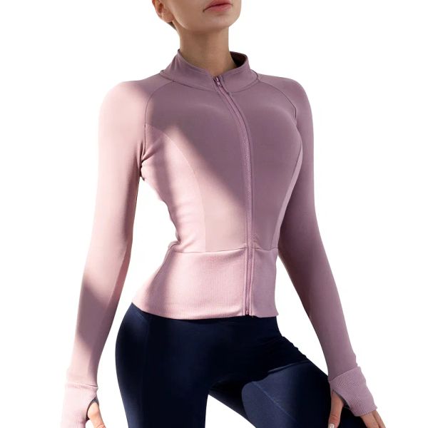Gym Long Sleeve Running Top Women's Zipper Running Yoga Fitness Sports Jacket$8.1