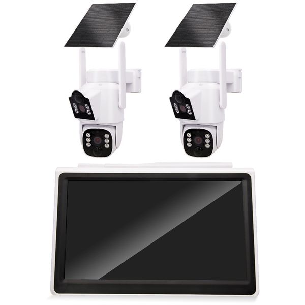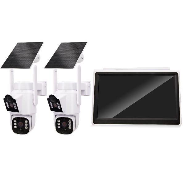 Factory Customized 10.1inch Weatherproof Solar Wifi 4MP Dual Lens Camera Kits Motion Detection Two Way Audio Night SD Card$104