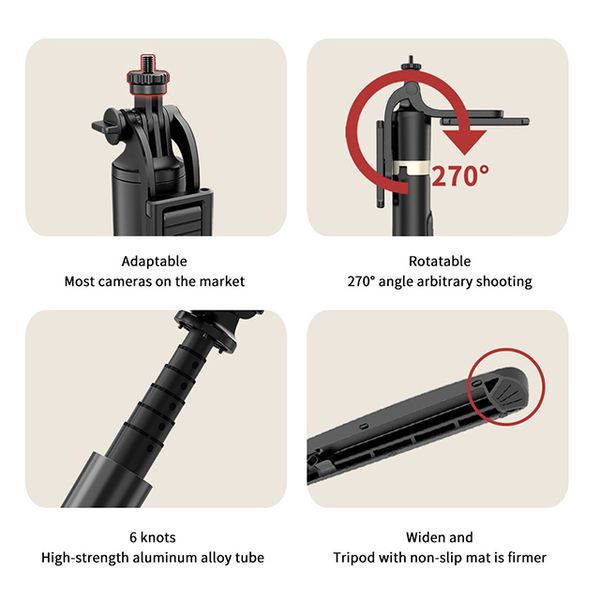 Q16 Multi-function Live Streaming Tripod Selfie Stick Support 360 Rotating Shooting Camera Tripod with 1/4 Interface$6.18
