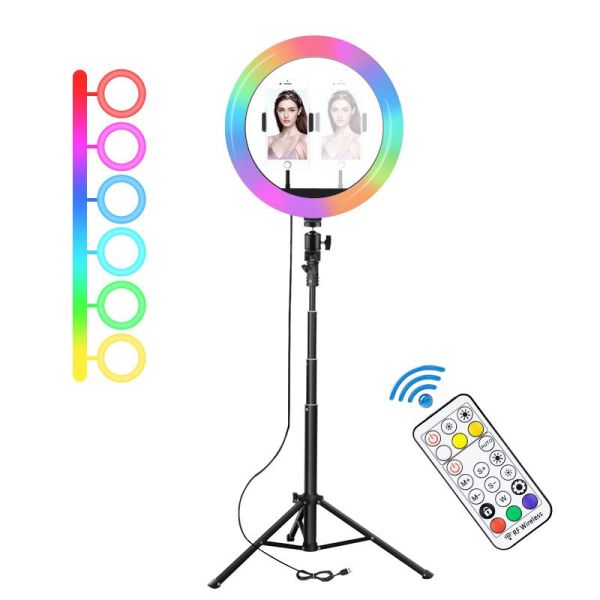 Portable Mobile Tripod With Selfie Ring Light 18inch RGB Cheap Price Selfie Ring Light with Tripod Stand Selfie Ring$9.44