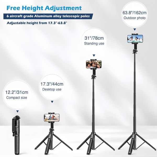 Wholesale 59" Selfie Stick Tripod with Remote & Metal Adapter, Compatible for MagSafe iPhone and All Android Phones$11