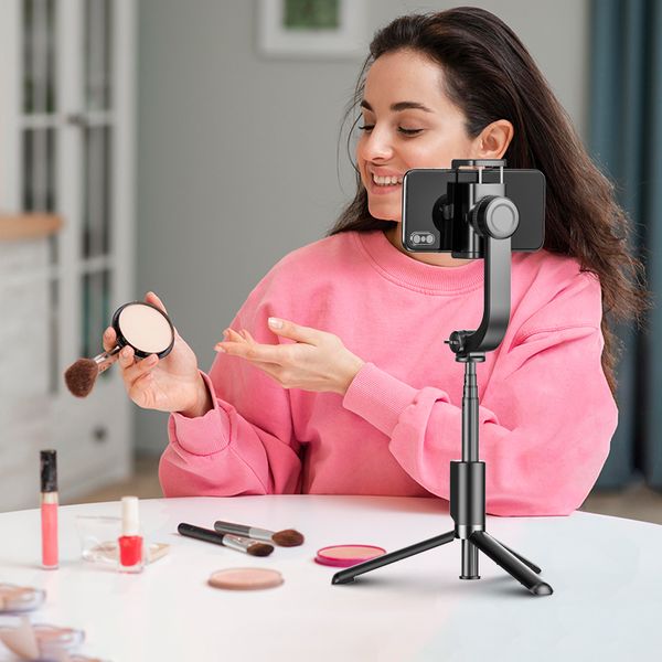 1-Axis Retractable Smartphone Gimbal Stabilizer Auto-Balance 360° Rotation Selfie Stick Tripod for iPhone & Android for Vlogging$15