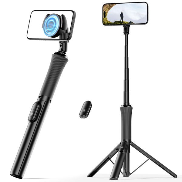 65-Inch Extendable Magnetic Selfie Stick for MagSafe iPhone 360° Rotatable Aluminum Holder with Wireless Remote$10.5