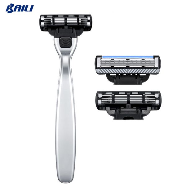 Metal Handle Razor Man Shaving Razor Reusable Face Razor Set With 4 or 6 Blades$0.98