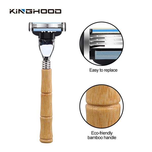 Custom logo Eco Friendly Hotel Bamnoo Wood Handle 3 Blade Shaving razor for Men$1.29