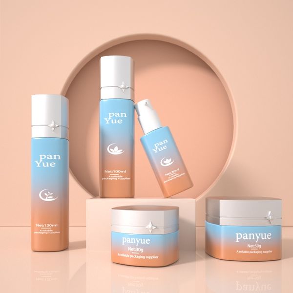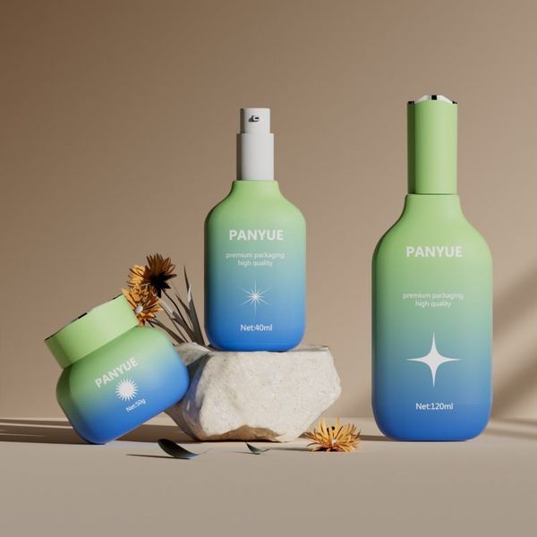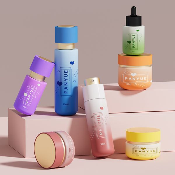 Gradient Colorful Rotating Pump Head Glass Bottle Set 30ml 100ml 120ml 30g 50g 100g Skincare Packaging$0.36