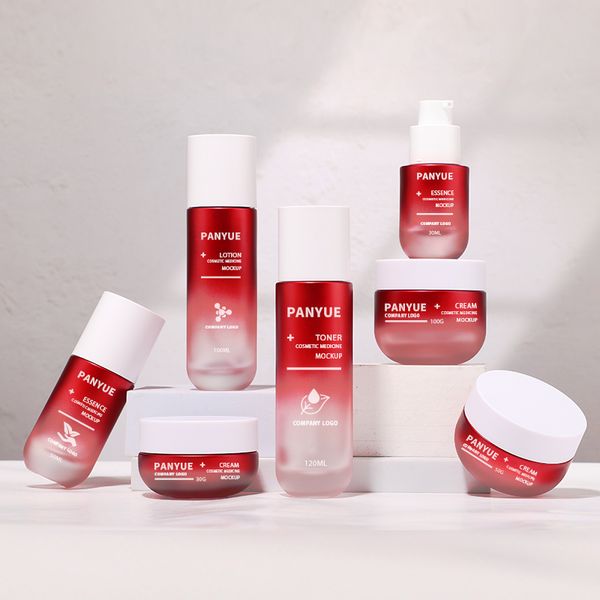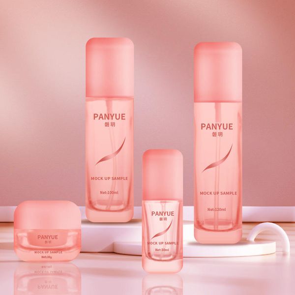 Skincare 50ml 100ml 120ml Lotion Serum Face Cream Pump Bottles 50g Cream Jar Recyclable Pink Glass Bottle Round Set$0.25