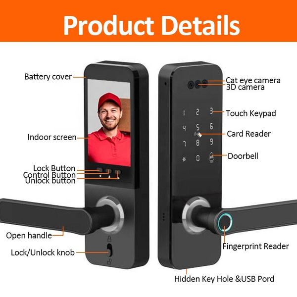 Smart Lock Fingerprint Biometric 3d Face Recognition App Control Electronic Digital Door Lock$98