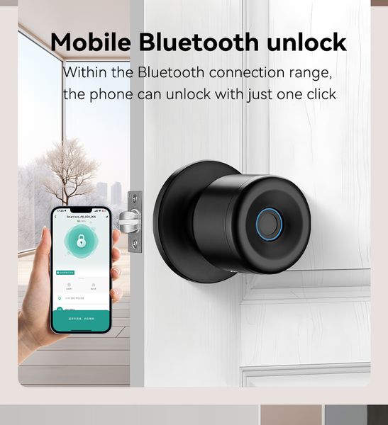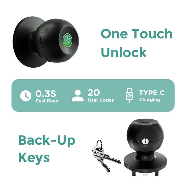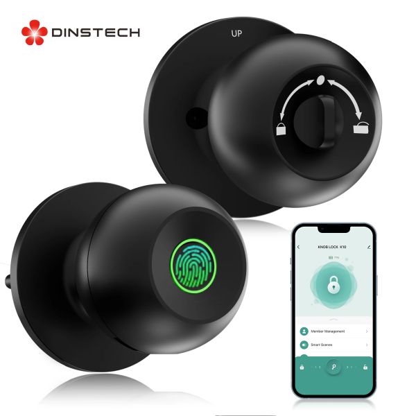 Dinstech 2023 Intelligent Electronic Door Handle Smart Lock Aluminium Smart Door Lock Knob Black Ball Fingerprint Door Knob Lock$49.99