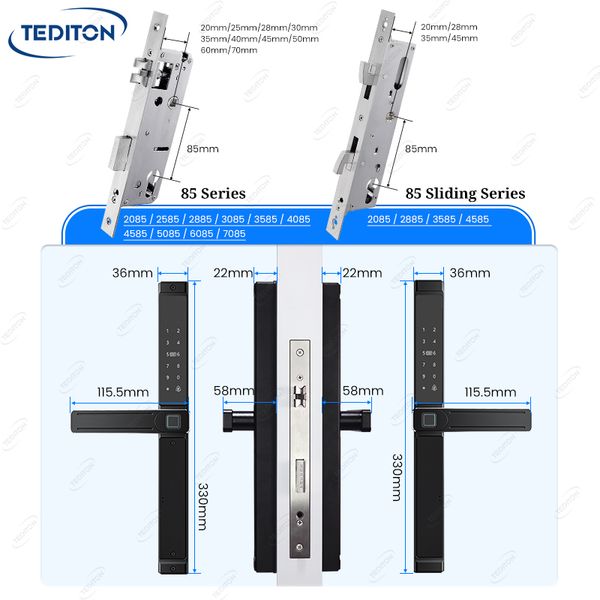 Smart Keyless Mortise Lock for Office Apartment TTLOCK BLE Unlock Fingerprint WiFi Network Cloud Data Aluminum Cerraduras$18.9