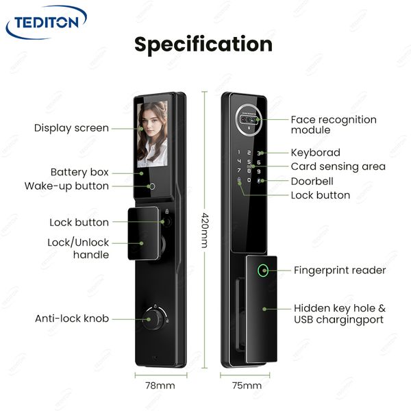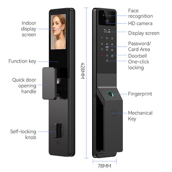 Fully Automatic Smart Keyless Tuya Door Lock App Fingerprint Digital Lock Face Recognition Lock With Camera$38