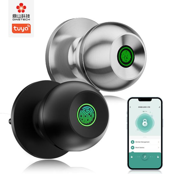 Dinstech Wholesale China Wholesale Smart Lock Aluminum Door Smart Door Lock Tuya Fingerprint Door Knob for Bedroom Office$21.55