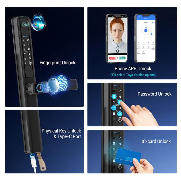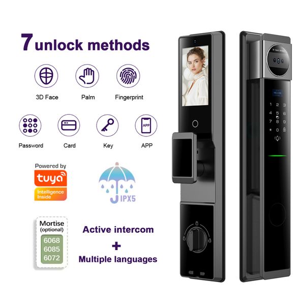 Tuya Waterproof Smart Door Security Lock 3d Face Recogination Intercom Biometric Fingerprint Digital Automatic Smart Door Lock$62