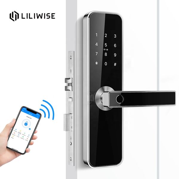 Liliwise Customized Wifi TTlock App Smart Door Lock Biometric Fingerprint Door Handle Digital Keyless Smart Lock$36
