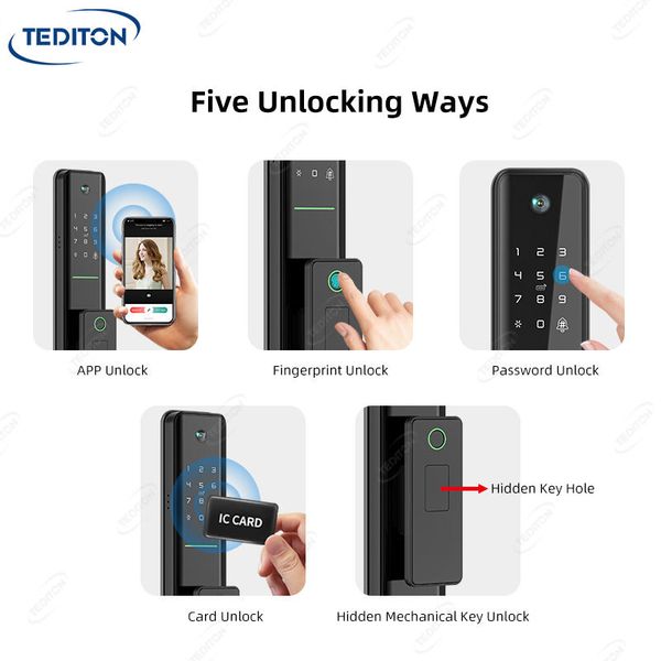 The company's extensive product portfolio includes fingerprint, face recognition, camera-integrated, and fully automatic smart locks. These solutions support multifaceted access methods such as Wi-Fi, Bluetooth, palm vein recognition, and RFID, with specialized compatibility for Tuya and TTLock ecosystems. Their hardware is designed for universal application in residential homes, Airbnb rentals, offices, and apartments, featuring specific models for wooden, aluminum, and glass doors.