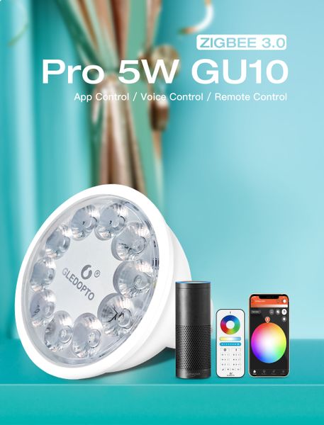 5W Gledopto Zigbee Pro Smart Light GU10 Base Rgb Cct Smart Home Light Rgbw Gu10 Smart Led Light Bulb$6.7