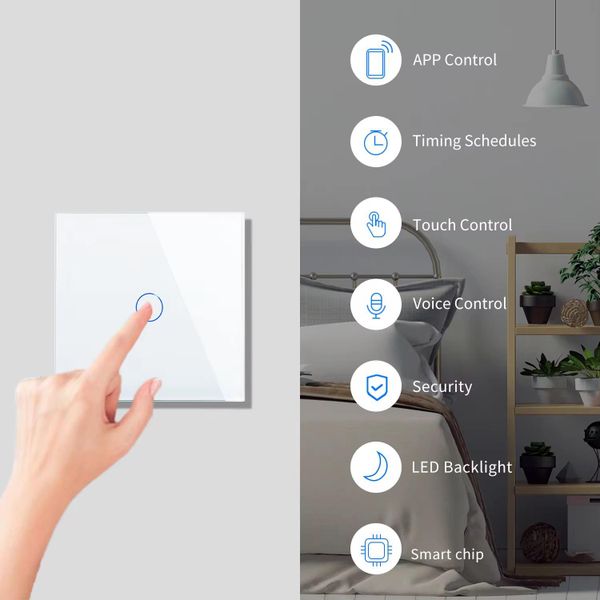 86*86mm Alexa-controlled Smart Wall Switches Glass Touch 2Way 3Way Factory Home Automation Devices Waterproof Smart Life$5.3
