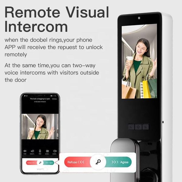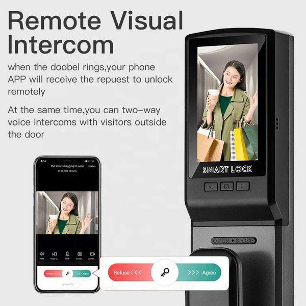 Tediton Video Door Phone Intercom Smart Locks Compatible Smart Locks Fingerprint Smartlock Tuya Smart Door$90.4