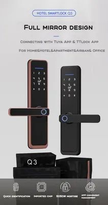 The company's extensive product portfolio includes fingerprint, face recognition, camera-integrated, and fully automatic smart locks. These solutions support multifaceted access methods such as Wi-Fi, Bluetooth, palm vein recognition, and RFID, with specialized compatibility for Tuya and TTLock ecosystems. Their hardware is designed for universal application in residential homes, Airbnb rentals, offices, and apartments, featuring specific models for wooden, aluminum, and glass doors.