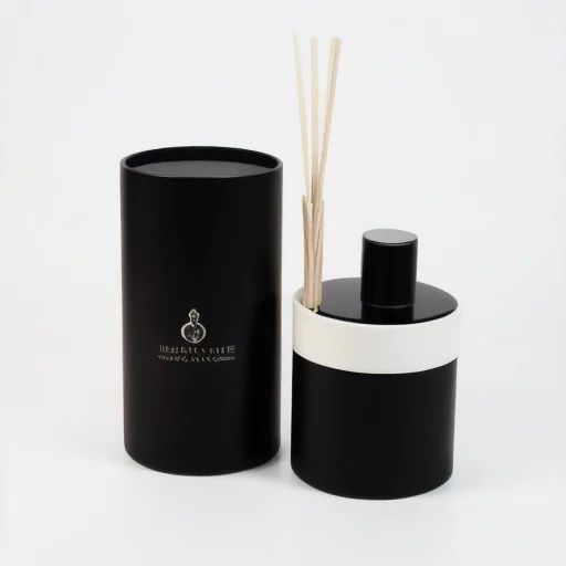 Recyclable Luxury Black Round Glass Bottles Reed Diffuser Set Gift Packaging Cylinder Aromatherapy Stick Paper Tube$0.3