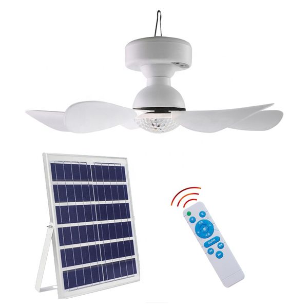 12W Solar Panel Charging Ceiling Fan Light with 3 Color Led Lighting Portable for Outdoor Indoor Use Solar Powered Fan Bulb$15.5