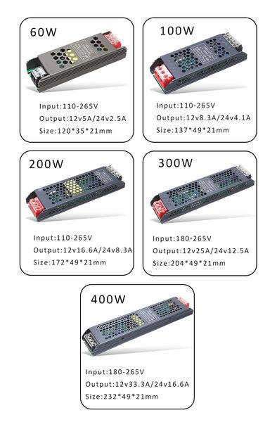 5V 12V 24V 36V 48V Led Ultra-thin Switching Power Supply 1A 2A 3A 5A 10A 15A 20A 30A 40A 50A SMPS for LED Strip Light CCTV LCD$1.85