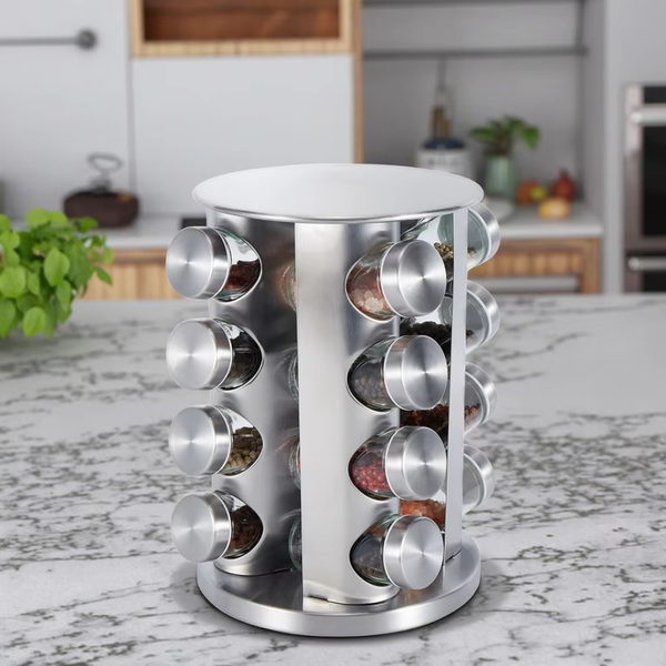 Custom Kitchen Countertop 4 Tiers Metal Round Rotating Spice Jars and Rack Set for Storage 16 Spice Jars$5