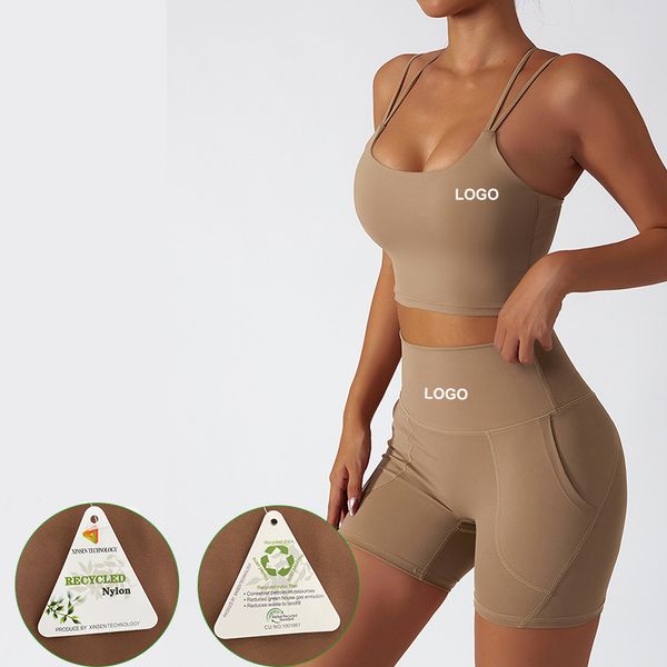 Custom Logo Women Activewear Sports Bra Shorts Set Recycled Yoga Wear Set With Pocket$8.96