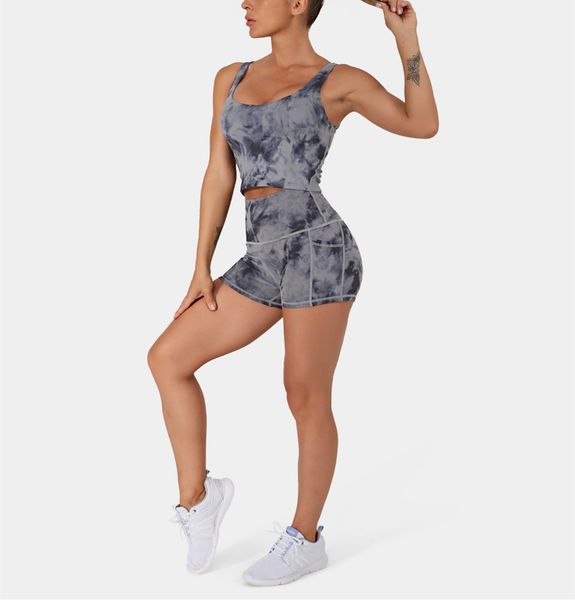 2025 Women Ladies Sports Bra Bike Shorts Tye Die Yoga Short Sets$15.2