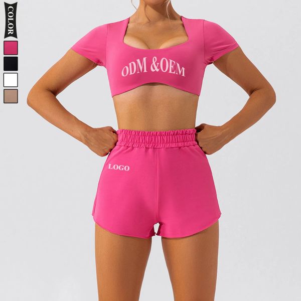 Fashion High Quality Yoga Sports Bra and Shorts Workout Set Custom logo Gym Workout Sets for Women$14.2