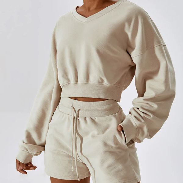 New Arrivals High Quality Womens Workout Set Gym Fitness Top and Shorts Yoga Sports Sweater Set$18.6
