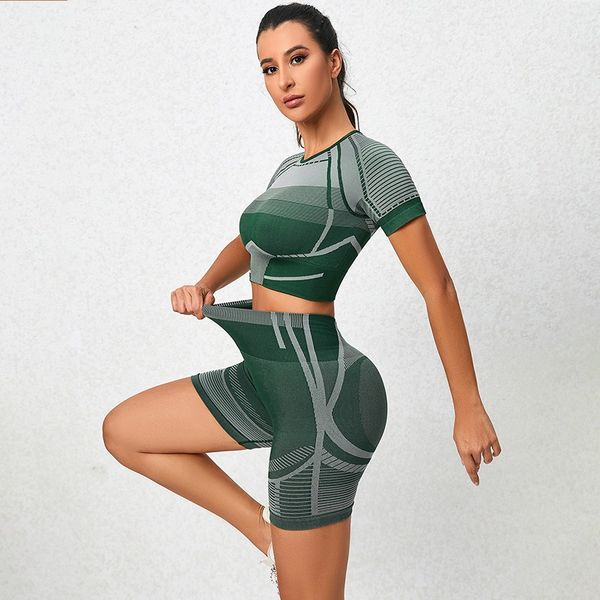 Seamless Nylon Leggings Set Active Women Shorts Yoga Gym Sports Short Sleeve Crop Tops Two Pieces Wear$7.99