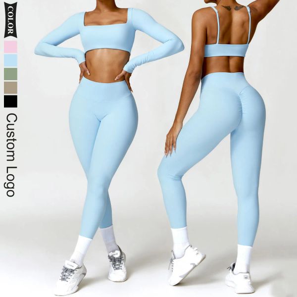 4pcs Women Gym Clothes Set Seamless Sports Bra Scrunch Shorts Leggings With Custom Logo$6.45